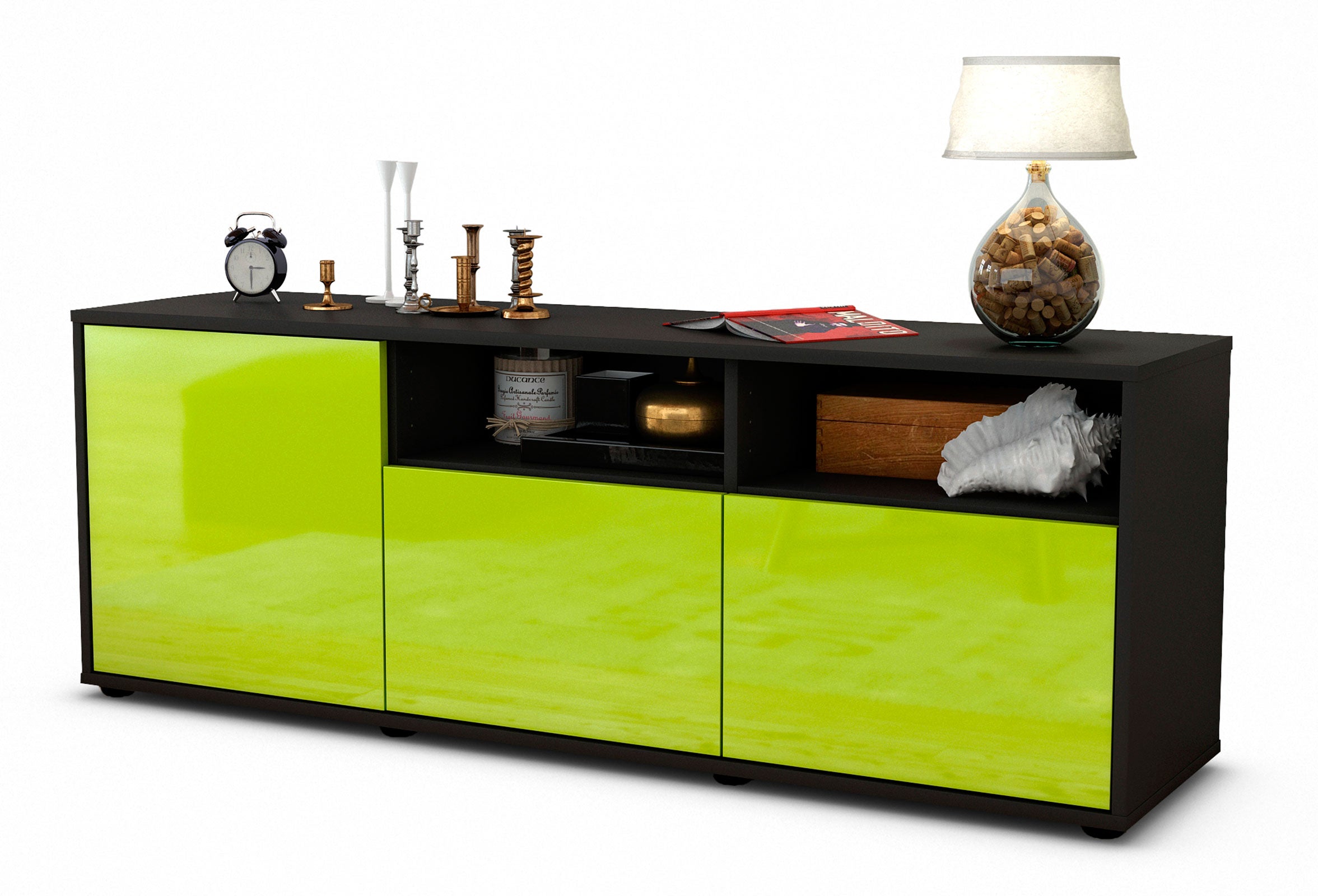 100% Hergestellt in Deutschland und mit Ökostrom produziert. Der Holzschrank überzeugt durch hochwertige Materialien sowie eine erstklassige und saubere Verarbeitung. Der Aufbau des Lowboards gestaltet sich aufgrund der Aufbauanleitung mit grafischen Darstellungen und Illustrationen einfach und schnell. Der Versand erfolgt innerhalb von 2-3 Werktagen. Dieses Lowboard hat Gesamt-Maße von 136x49x35cm. Viel Platz, eine leere Wand, kein passendes Möbelstück? Mit der Gesamtlänge von ca. 1,36 Meter bietet dieser Schrank vielzählige Einsatzmöglichkeiten. Die Frontfarbe Hochglanz Limettengrün bringt Schwung, Glanz und Farbe in jede Wohnung. Das knallig, leuchtende grün ist glänzend und wirkt wie ein frisches Apfelgrün oder eine saftige Limette. Der anthrazit-matte Korpus harmoniert mit allen Farben und wirkt besonders edel im Kontrast zu hellen Wänden.