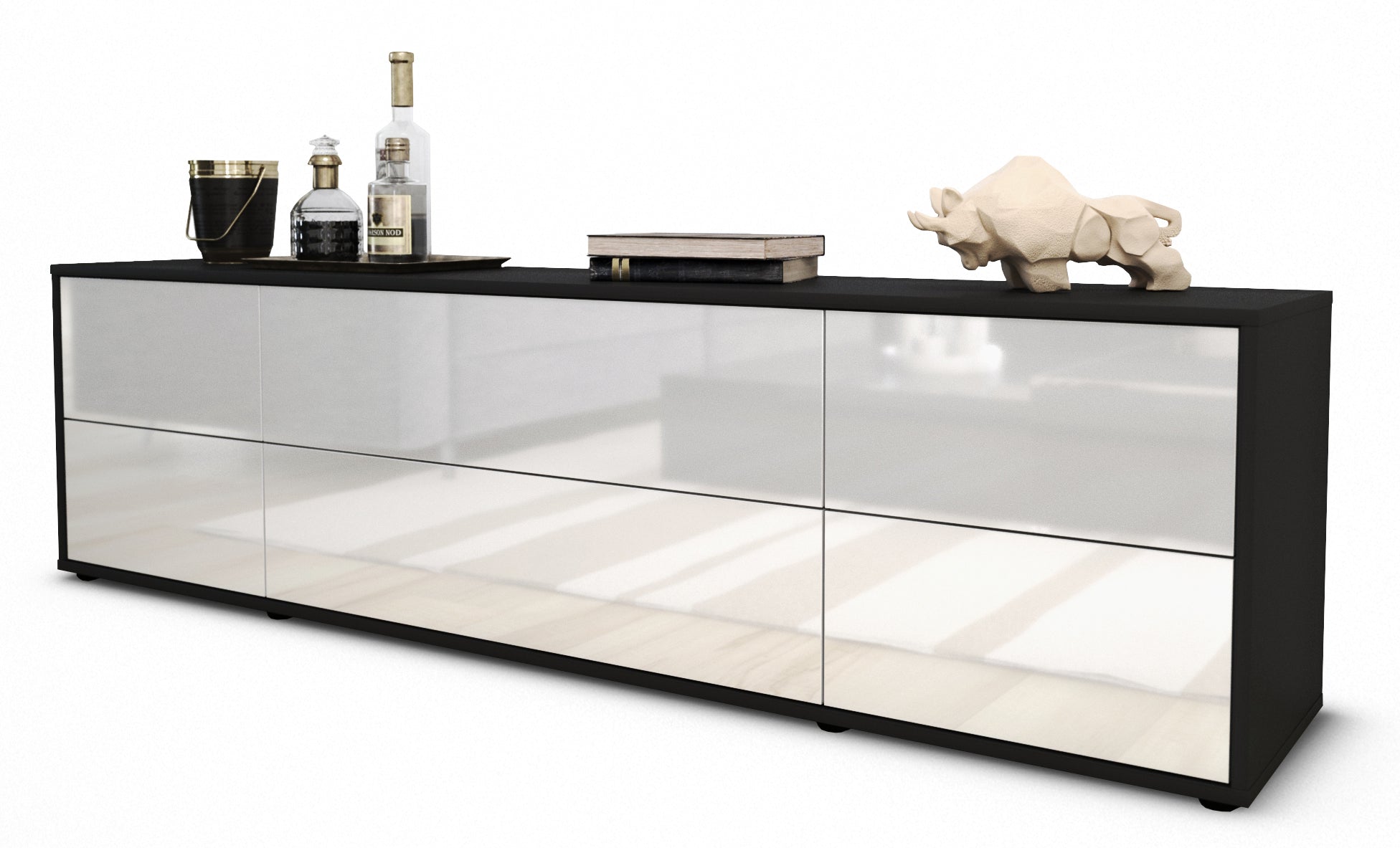 100% Hergestellt in Deutschland und mit Ökostrom produziert. Der Holzschrank überzeugt durch hochwertige Materialien sowie eine erstklassige und saubere Verarbeitung. Der Aufbau des Lowboards gestaltet sich aufgrund der Aufbauanleitung mit grafischen Darstellungen und Illustrationen einfach und schnell. Der Versand erfolgt innerhalb von 2-3 Werktagen. Dieses Lowboard hat Gesamt-Maße von 180x49x35cm. Viel Platz, eine leere Wand, kein passendes Möbelstück? Mit der Gesamtlänge von ca. 1,80 Meter bietet dieser Schrank vielzählige Einsatzmöglichkeiten. Die Frontfarbe Hochglanz Weiß bringt als reine und unschuldige Farbe Ruhe in jeden Raum. Mit dem Glanz Weiss erzeugt man einen hochwertigen glänzenden Kontrast zu dunklen Wänden. Der anthrazit-matte Korpus harmoniert mit allen Farben und wirkt besonders edel im Kontrast zu hellen Wänden.