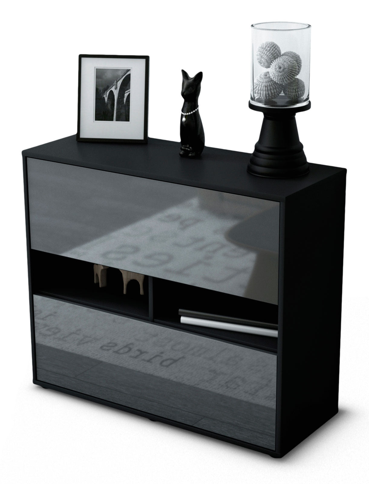 Dieses Sideboard hat Gesamt-Maße von 92x79x35cm. Viel Platz, eine leere Wand, kein passendes Möbelstück? Unsere 92 cm lange Kommode ist die perfekte Lösung! Die Frontfarbe Hochglanz Graphit Grau ist zeitlos, schlicht und daher für jeden Wohnbereich glänzend geeignet. Anthrazit, dunkelgrau oder granit – diese Farbtöne bringen Stil & Glanz. Der anthrazit-matte Korpus harmoniert mit allen Farben und wirkt besonders edel im Kontrast zu hellen Wänden.