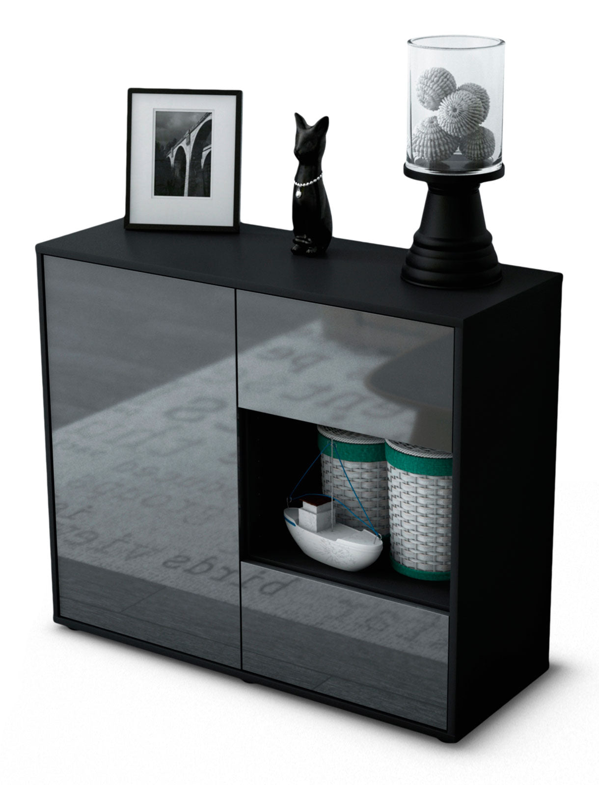 Dieses Sideboard hat Gesamt-Maße von 92x79x35cm. Viel Platz, eine leere Wand, kein passendes Möbelstück? Unsere 92 cm lange Kommode ist die perfekte Lösung! Die Frontfarbe Hochglanz Graphit Grau ist zeitlos, schlicht und daher für jeden Wohnbereich glänzend geeignet. Anthrazit, dunkelgrau oder granit – diese Farbtöne bringen Stil & Glanz. Der anthrazit-matte Korpus harmoniert mit allen Farben und wirkt besonders edel im Kontrast zu hellen Wänden.