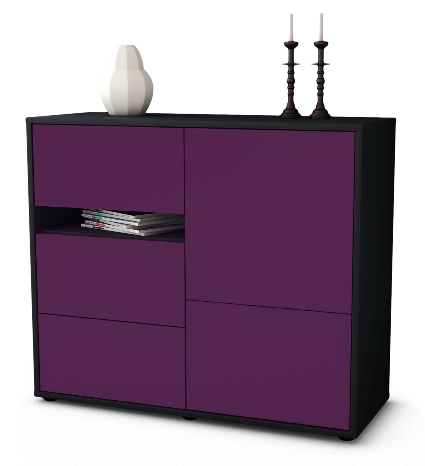 Dieses Sideboard hat Gesamt-Maße von 92x79x35cm. Viel Platz, eine leere Wand, kein passendes Möbelstück? Unsere 92 cm lange Kommode ist die perfekte Lösung! Die Frontfarbe im kräftigen Aubergine wirkt als Farbtupfer in allen Räumlichkeiten. Lila, violett und Brombeer Töne versprühen Glamour und Eleganz. Der anthrazit-matte Korpus harmoniert mit allen Farben und wirkt besonders edel im Kontrast zu hellen Wänden.
