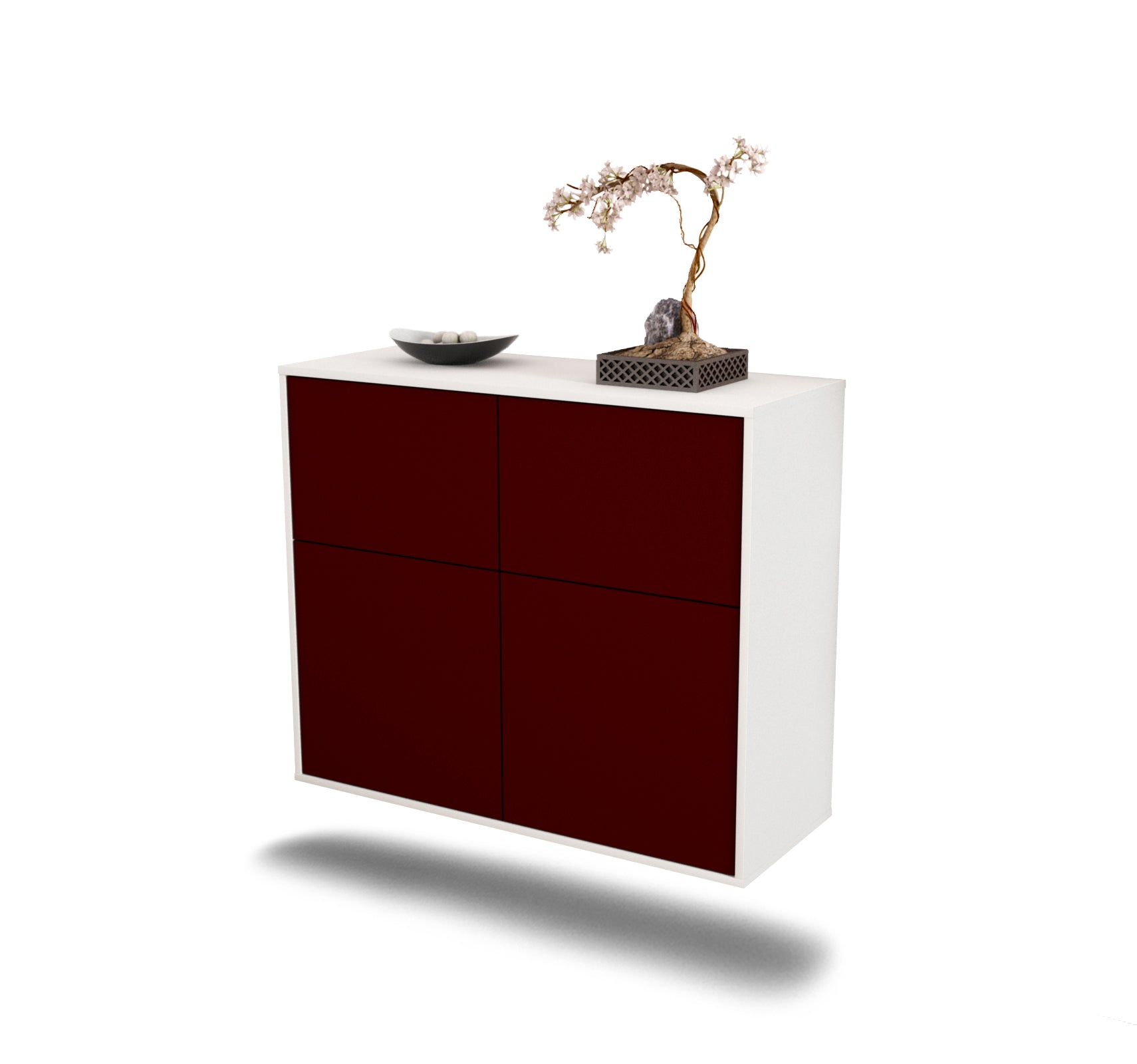 Dieses Sideboard hat Gesamt-Maße von 92x79x35cm. Viel Platz, eine leere Wand, kein passendes Möbelstück? Unsere 92 cm lange Kommode ist die perfekte Lösung! Die Frontfarbe dunkles Bordeaux Rot bringt Wärme ins Haus. Das intensive Weinrot ist einer der edelsten Rot Töne und verleiht jeder Einrichtung einen Glamour Faktor.Der weiße matte Korpus kann überall integriert werden. Mit der beruhigenden Farbe weiß, findet sich leicht Stellplatz für dieses schöne Möbelstück.