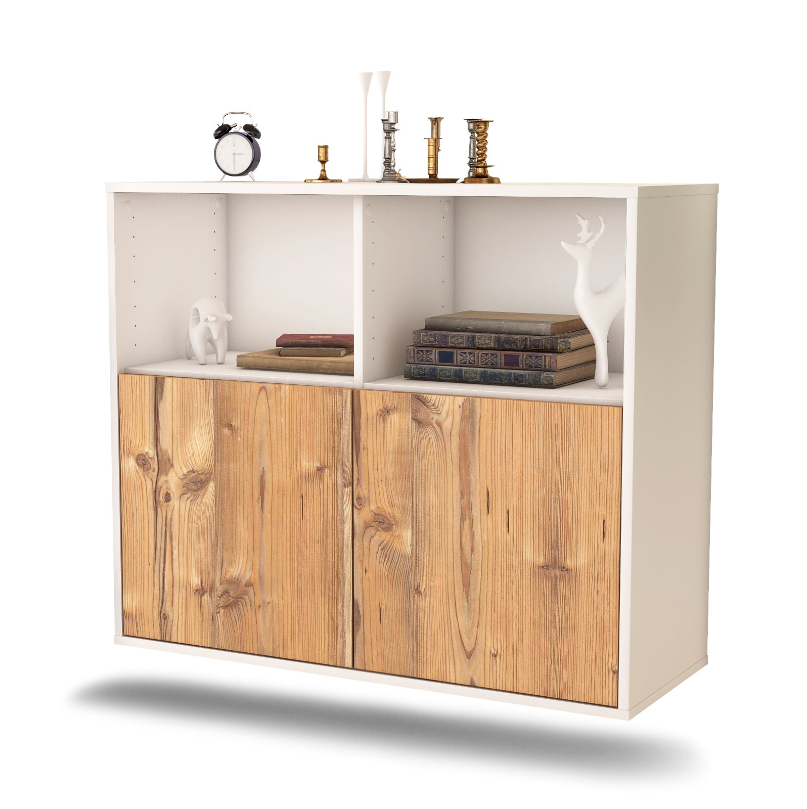 Dieses Sideboard hat Gesamt-Maße von 92x79x35cm. Viel Platz, eine leere Wand, kein passendes Möbelstück? Unsere 92 cm lange Kommode ist die perfekte Lösung! Die Holz Front Pinie Nachbildung ist ein freundliches Braun mit farblich abgesetzter Holzmaserung. Die Integrierung in Wohnräume ist durch das warme Holz leicht möglich. Der weiße matte Korpus kann überall integriert werden. Mit der beruhigenden Farbe weiß, findet sich leicht Stellplatz für dieses schöne Möbelstück.
